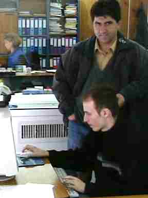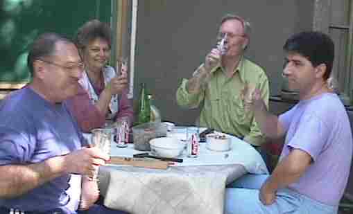 I worked with a young fellow, Gheorghe Sandor, who is very intelligent and quite talented. He created a very attractive "look" for the site. However, it showed well in Internet Explorer but not in Netscape. So well have two versions, with a "browser sniffer" to make the decision: fun and games. At my host, Sorin Chiriacs, homeIt's early Sunday afternoon and I'm having a gin and tonic, sitting in the living room of a quite comfortable house, while Sorin's wife, Christina, is accessing the Internet in the corner and I'm at the coffee table with my notebook computer and Sorin is bleeding the radiators in preparation for winter. Later I review with Sorin a flow chart that I completed at my apartment, of the system we are planning. It's a glorious sunny day. The temperature about 1 PM, matches yesterday's 16+ Celsius. Later in the afternoon we have a barbecue in the back yard. The meat is sausages and michi (spelled mici in Romanian), something like spiced hamburger in little rolls. Quite tasty. Mici means "small" in Romanian. Sort of like the progress we have made in integrating Quebec into confederation. My sensitive stomach was acting up a bit in the morning so I took an Immodium pill before I got into the full-fledged trots. It helped. Of course, the gin Sorin served me possibly helped more. There are some pleasant ways to kill bugs.